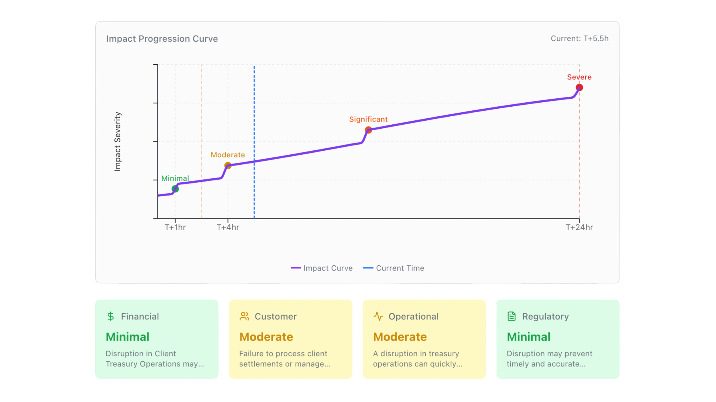 Customer harm thresholds and regulatory tolerance are modeled alongside technical recovery objectives